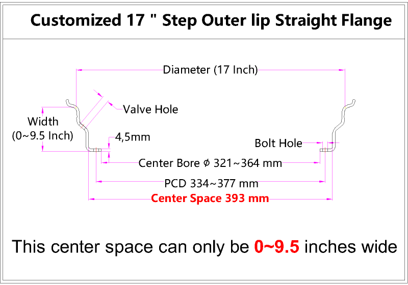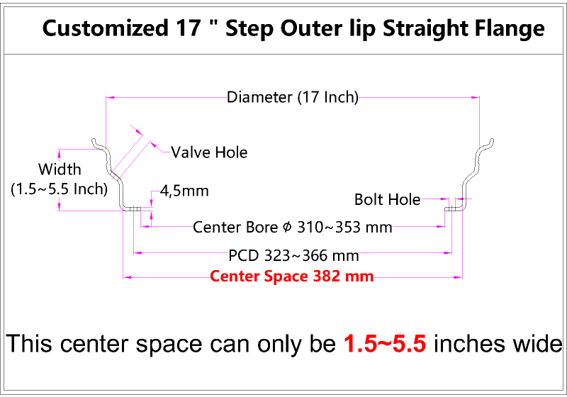 - Product Name: Custom 17 Inch Step Outer lip Straight Flange