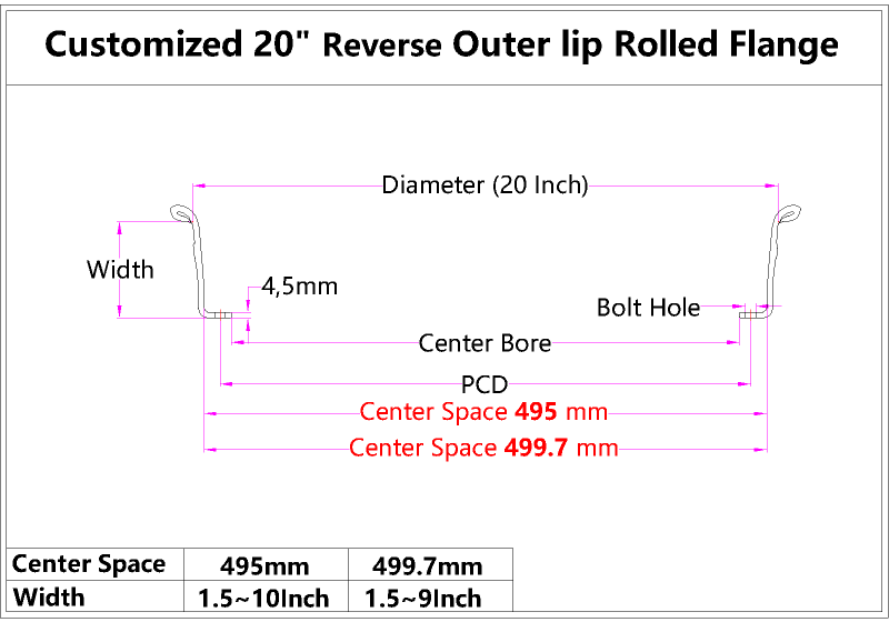 - Product Name: Custom 20 Inch Reverse Outer lip Rolled Flange