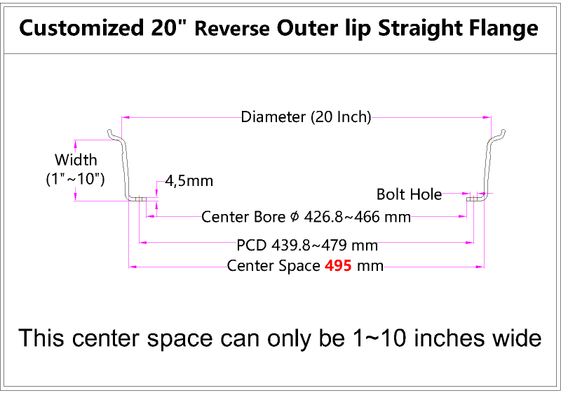 - Product Name: Custom 20 Inch Reverse Outer lip Straight Flange