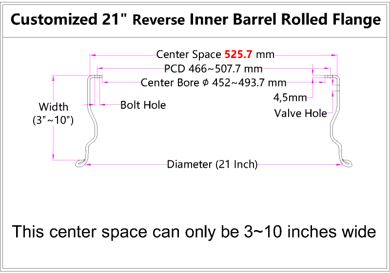 - Product Name: Custom 21 Inch Reverse Inner Barrel Rolled Flange