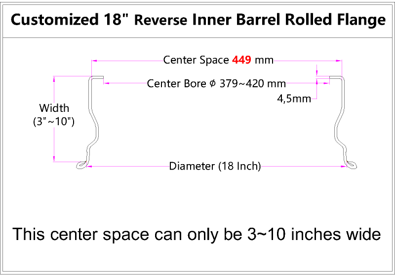 - Product Name: Custom Blank 18 Inch Reverse Inner Barrel Rolled Flange