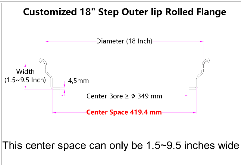 - Product Name: Custom Blank 18 Inch Step Outer lip Rolled Flange
