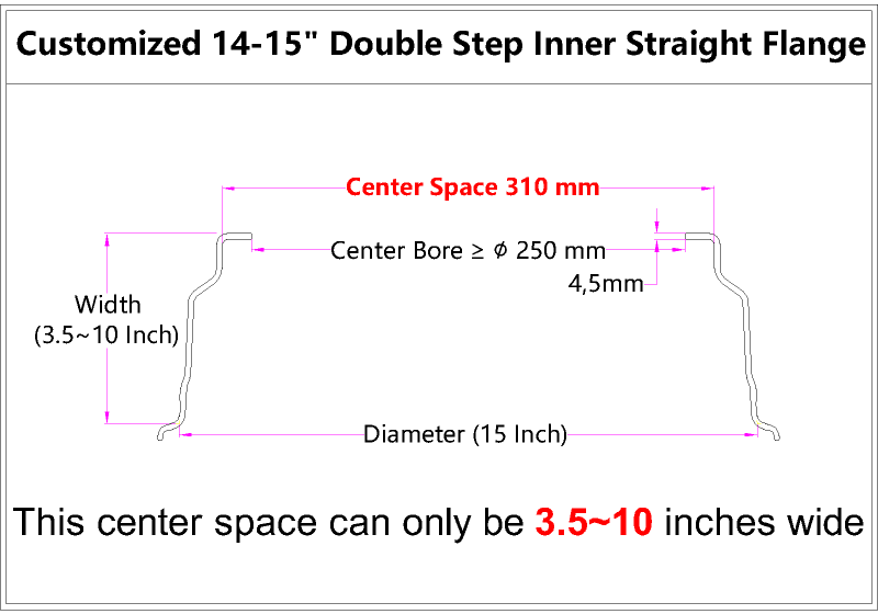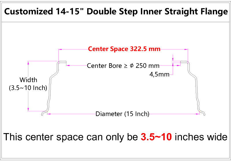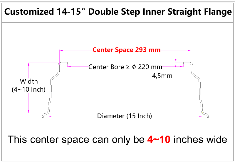 Get your Customized blank 14-15" Double Step Outer lip Straight Flange here.